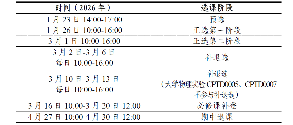 3. 本院的课表《2025-26学年第2学期课程表合集》(附件1)供参考,上课前最终以教务系统上的时间、地点为准。教务部源网站上的《选课手册》作为选修公共课或其它学院课程的参考。
