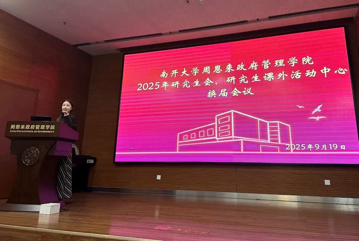学院党委副书记兼副院长崔宇对研究生会和研究生课外活动中心过去一年的工作给予了高度评价。她指出,两个组织是学院与研究生同学之间重要的桥梁与纽带,作用关键,责任重大。会上,崔书记提出了三点期望:一是坚守初心,扛起责任使命;二是锻炼业务水平、端正工作作风;三是围绕中心、服务大局。崔书记鼓励新一届学生干部要以实际行动践行“允公允能”的南开精神,继续发扬优良传统,不断创新工作方式方法,更好地服务于全体研究生同学。