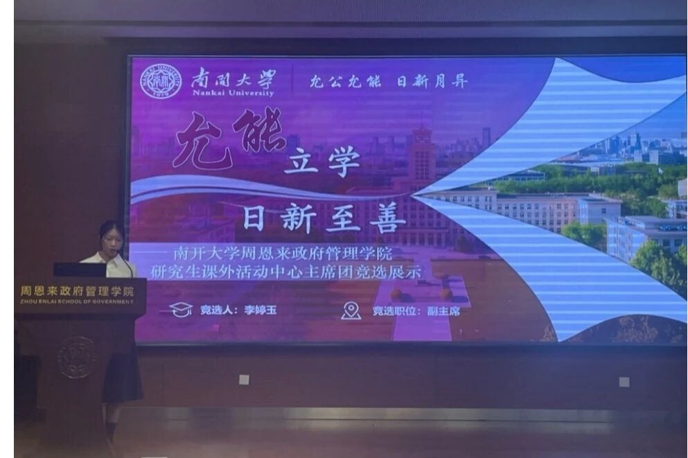 随后,第二届研究生课外活动中心主席朱格仪向大会工作报告,展示了课外活动中心在过去一年中的成长轨迹。研究生课外活动中心始终坚持以习近平新时代中国特色社会主义思想为指导,在学院党委团委的正确领导下,从健全内部管理到创新活动品牌,再到服务广大学生,课外活动中心通过一系列丰富多彩的文体活动,如“音符跳动,在音乐疗愈中感受心灵律动”心理团辅活动、“翔宇聚韵,筝绘南开”风筝制作活动等,既关注到了同学们的心理健康,又丰富了校园文化生活。