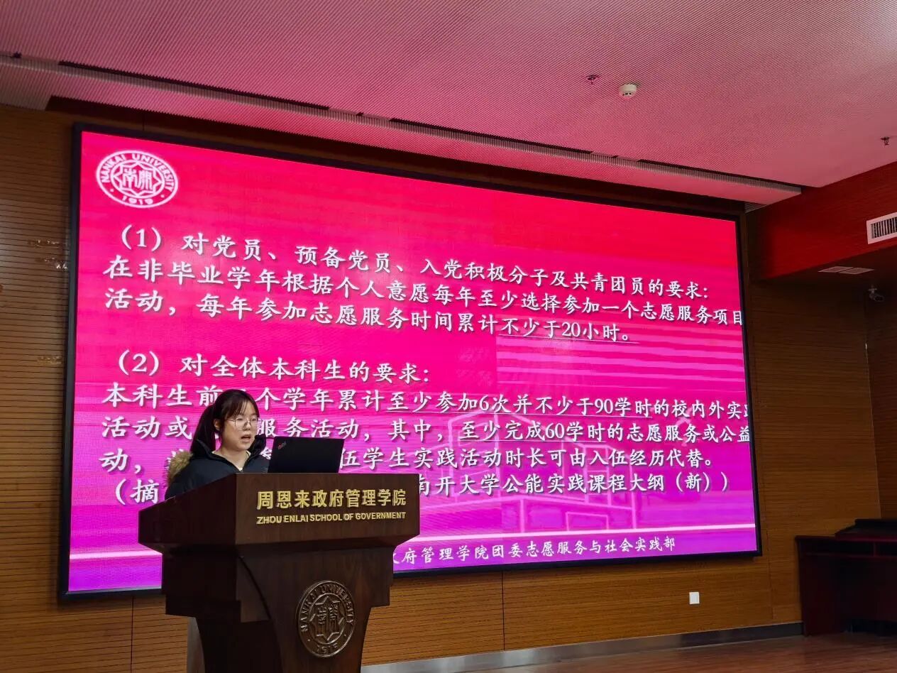 随后,实践考评中心的负责人邹含瑜同学为大家详细说明了志愿服务与社会实践时长的相关规定,并结合日韩电影