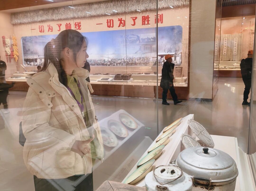 “展厅内,我震撼于那些沉默的见证者,一支支锈迹斑斑的步枪、一件件破旧的军大衣、一张张泛黄的稿件。在这里,它们不再是冰冷的文物,而是那段热血历史的亲历者、见证者与延续者。它们诉说着那场战役的血与泪,展示着革命烈士们的铮铮铁骨,昭示着这场胜利的来之不易。”