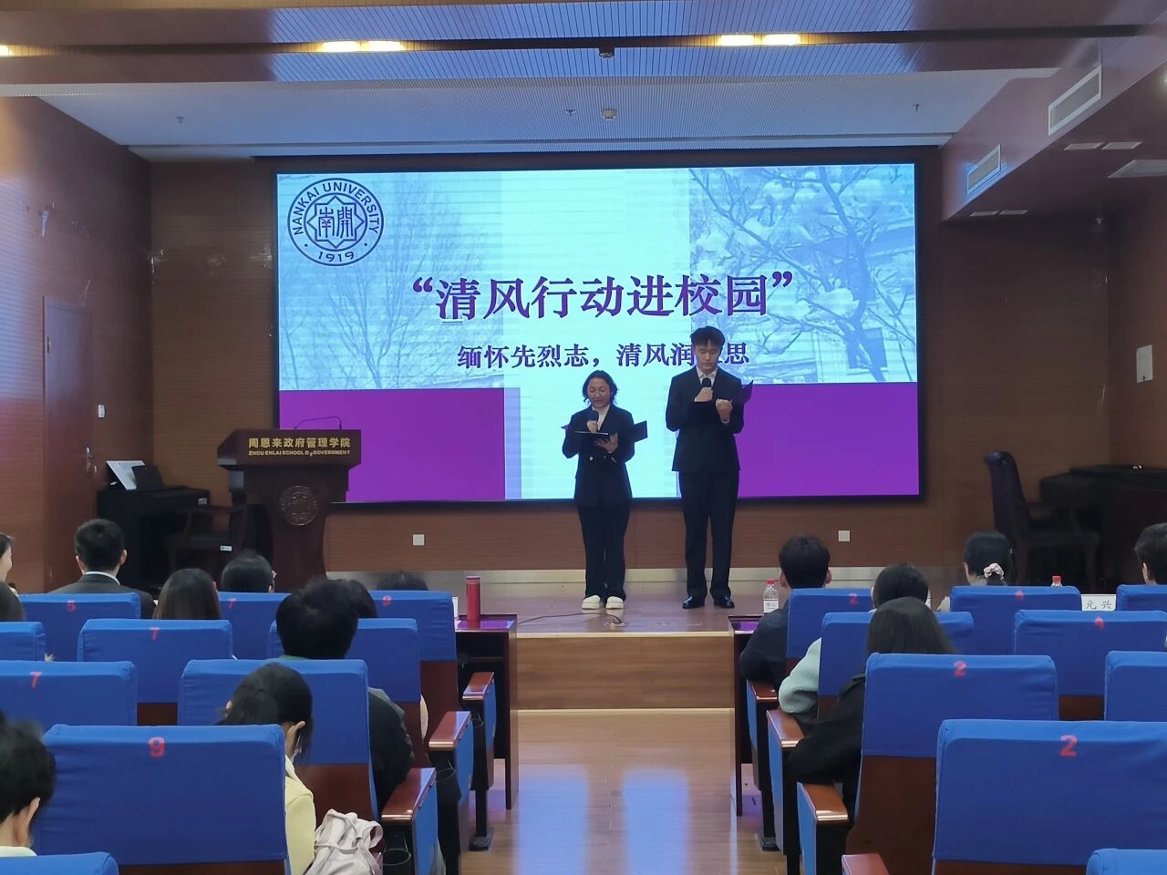 活动伊始,与会人员集体观看了《清风缅怀先烈志,公能赓续伯苓魂》的主题视频,重温了中国的革命之途和南开的公能之路。