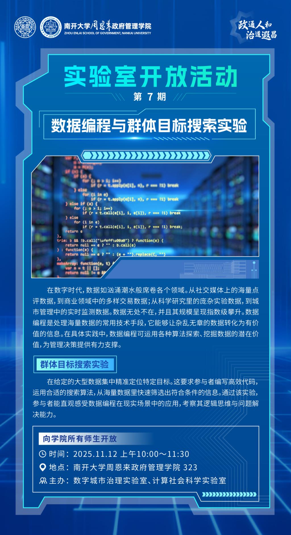 实验室开放活动第7期|数据编程与群体目标搜索实验